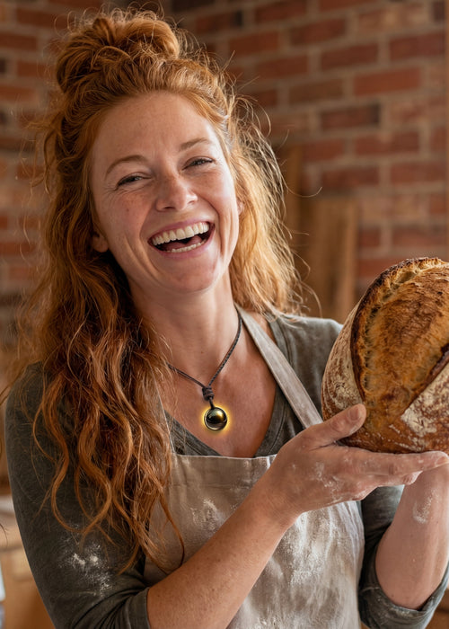 This pendant features a unique combination of natural magnet, copper, and metallic fragments in resin. The natural magnet promotes calmness and reduces stress, while copper enhances circulation, supporting your overall well-being. Together, they create a balanced energetic shield around you.